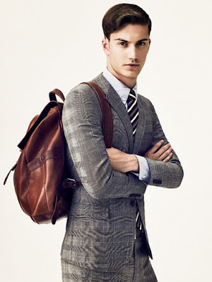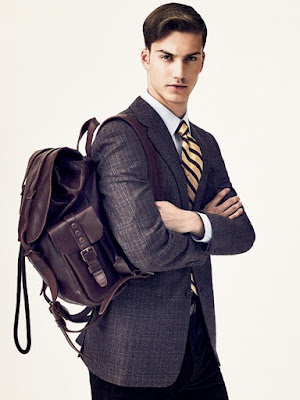 I think when you wear your suit and ready for business, the backpack must also looks equally good and send the message too. To me one material that is a perfect companion is definitely leather. Or pleather, if you can't afford the hefty price tag. I really love how the color of the 'pack compliment the suits in these pix: brown bag with grey suit, shades of chocolate with tobacco and darker hues of grey, as well as black bag with dark grey suits. It follows the same rules of pairing up your clothes AND your shoes.
