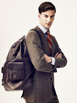 Alas! I have found a perfect 'muse' how to pair up a backpack and a smart suit. When I saw most guys down the Tube station going to work, one thing that is quite revolting is their choice of backpack. It made me cringed. No, not physically, otherwise that will offend them even more. I have no comment on their smart suit though coz it looks quite okay, but when it comes to the 'pack that they're carrying... I rest my case.